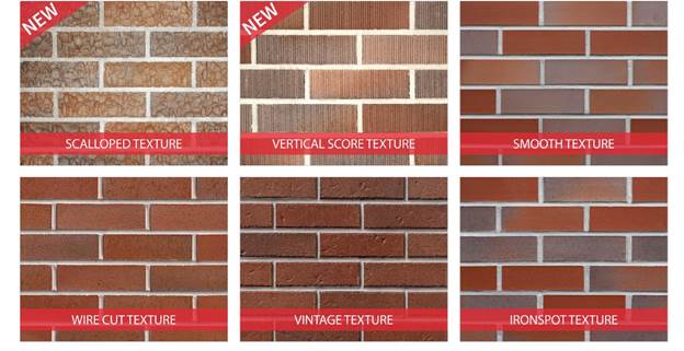 In addition to their wide range of colors and sizes, METROBRICK® also offers six different thin brick textures, with the newest additions being Scalloped and Vertical Score: