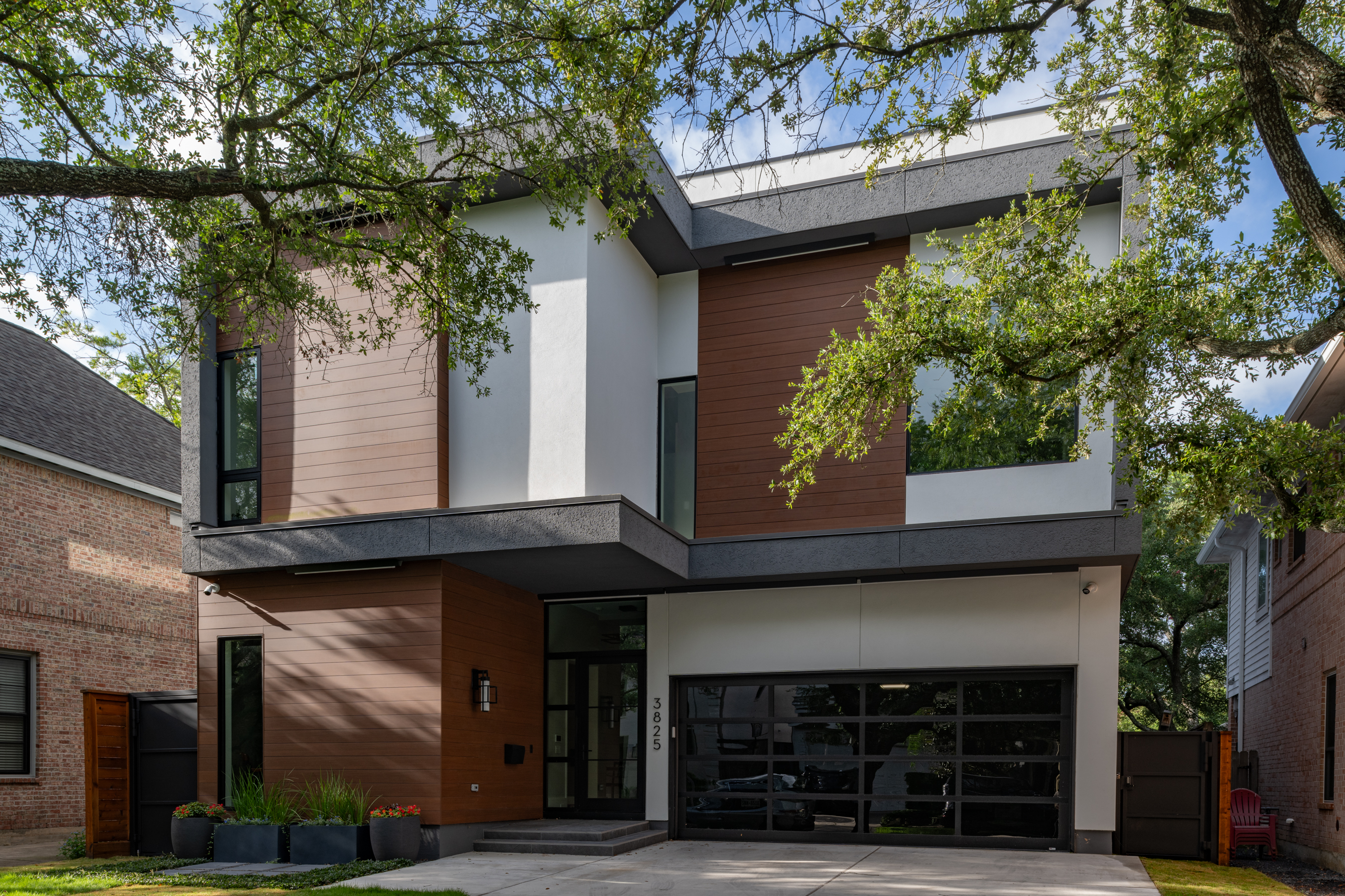 Inspired by contemporary Scandinavian architecture, the LRK-designed Normandy Avenue Apartments in Dallas feature Pura® NFC Aged Ash laid vertically on their street-facing façades.