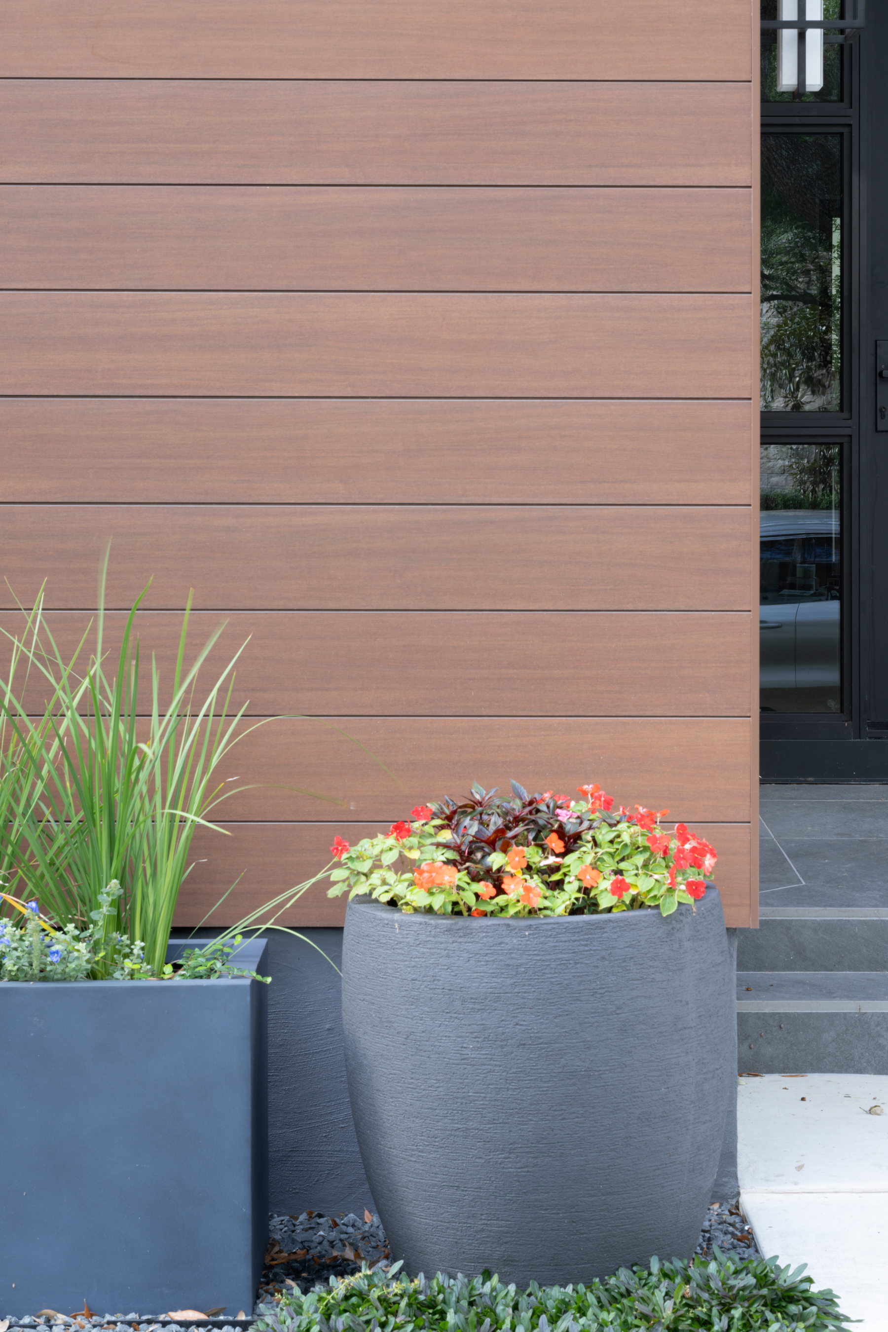 High quality wood grain photos allow these planks to mimic the appearance of natural wood cladding without the need for regular re-staining, re-sealing, or re-finishing. “You get a wood look plank, it’s low maintenance, and you don’t have to do anything to it,” says Nash. “It’s great for situations where an architect might say ‘I’m really looking for a piece of wood, but I don’t want to have to go back and do all of those follow-on maintenance and follow-on items on a routine basis.’”